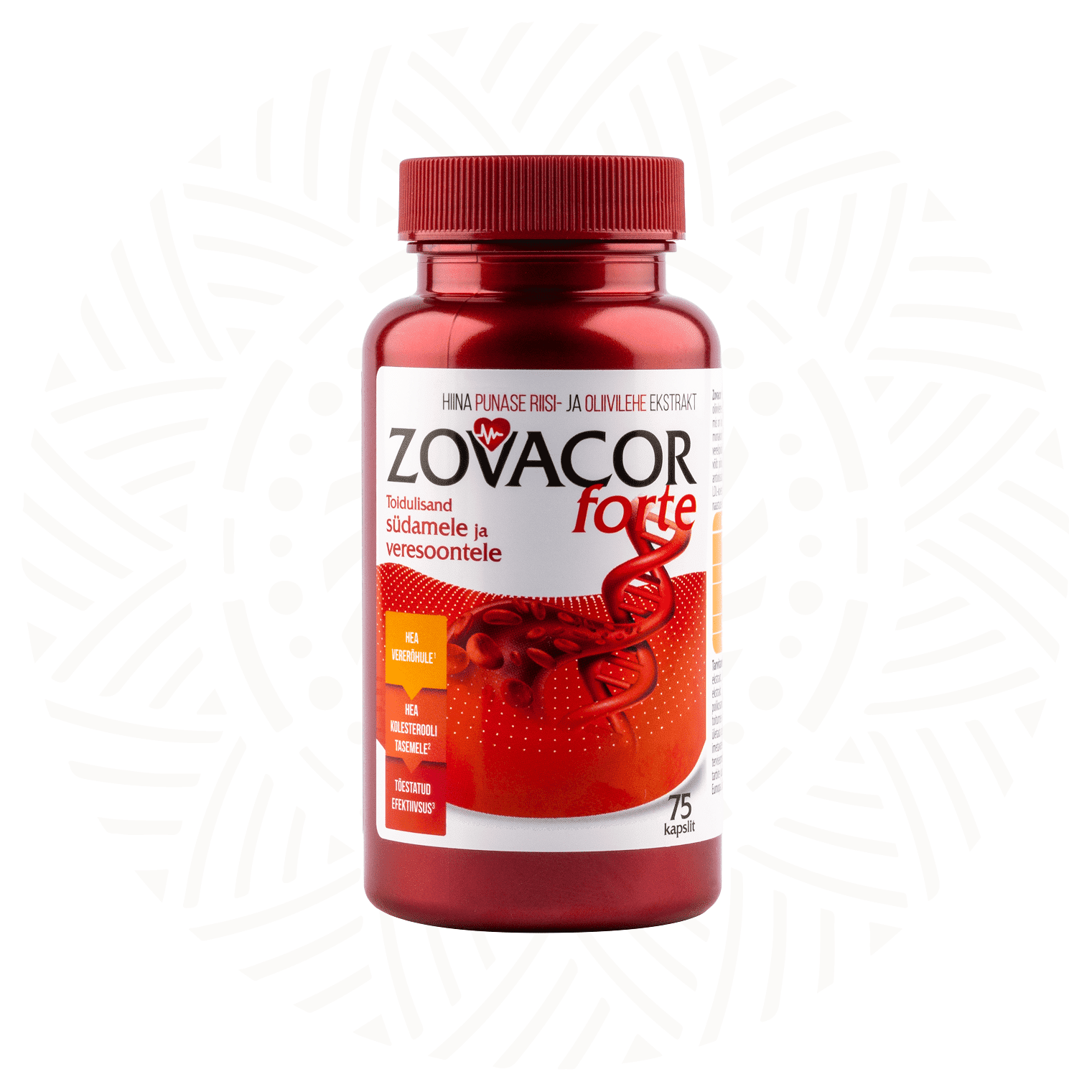 Zovacor Forte is a special dietary supplement for maintaining heart and vascular health, featuring Chinese red yeast rice, red onion, and olive leaf extracts.