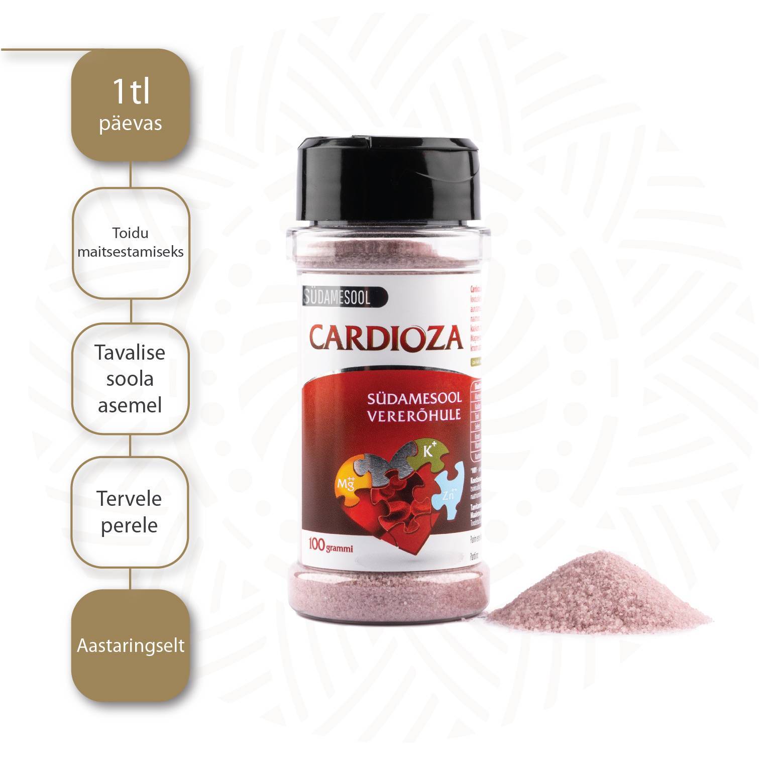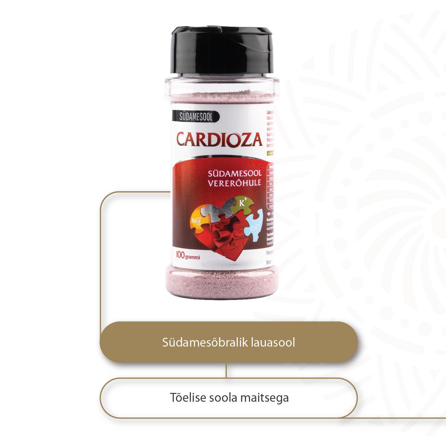 Cardioza Südamesool sisaldab naturaalseid mineraalseid sooli, mis on saadud looduslikest maa-alustest soola ladestustest ning mineraalvee ja kõrgmineraliseeritud vee aurutamisel.