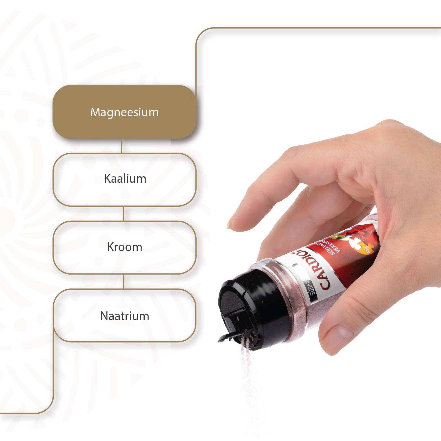 „Puuduoleva“ naatriumi asemel sisaldab Cardioza Südamesool magneesiumi, kaaliumi, tsinki, seleeni ja kroomi.