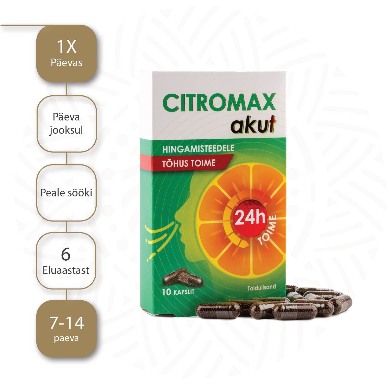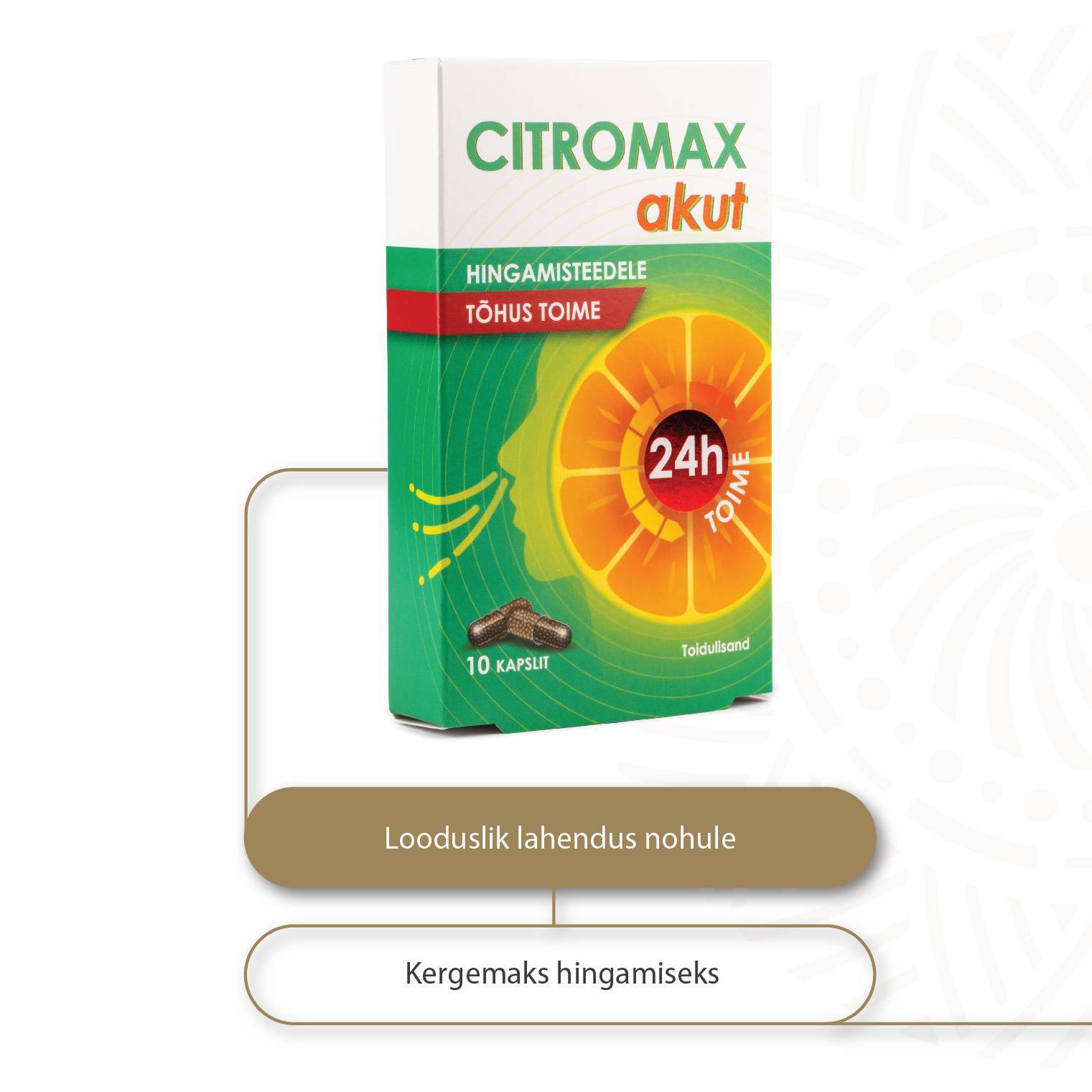 Citromax AKUT on spetsiaalne toode ülemiste hingamisteede hea tervise säilitamiseks tõmmu pelargooniumi ja mõruapelsini ekstraktiga.