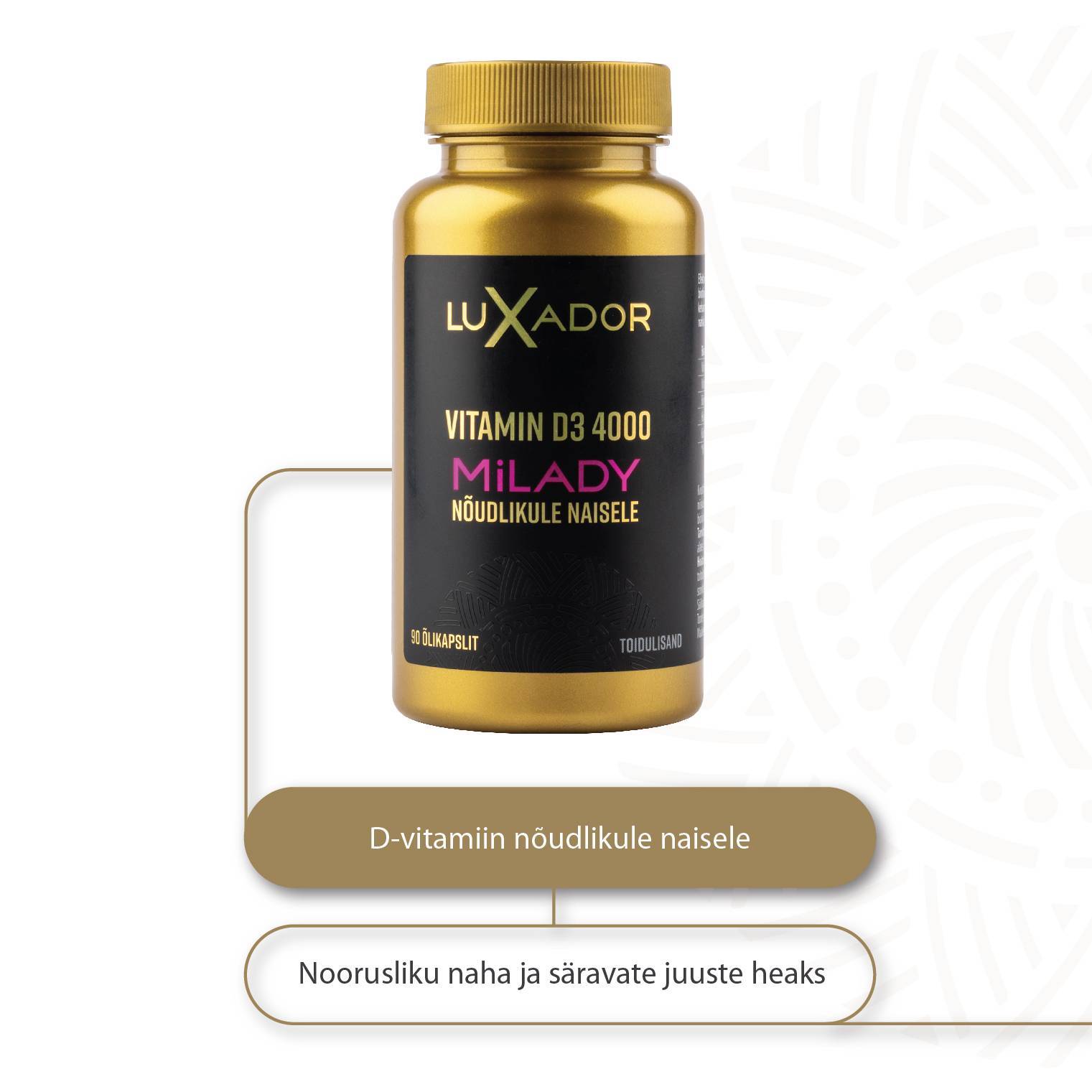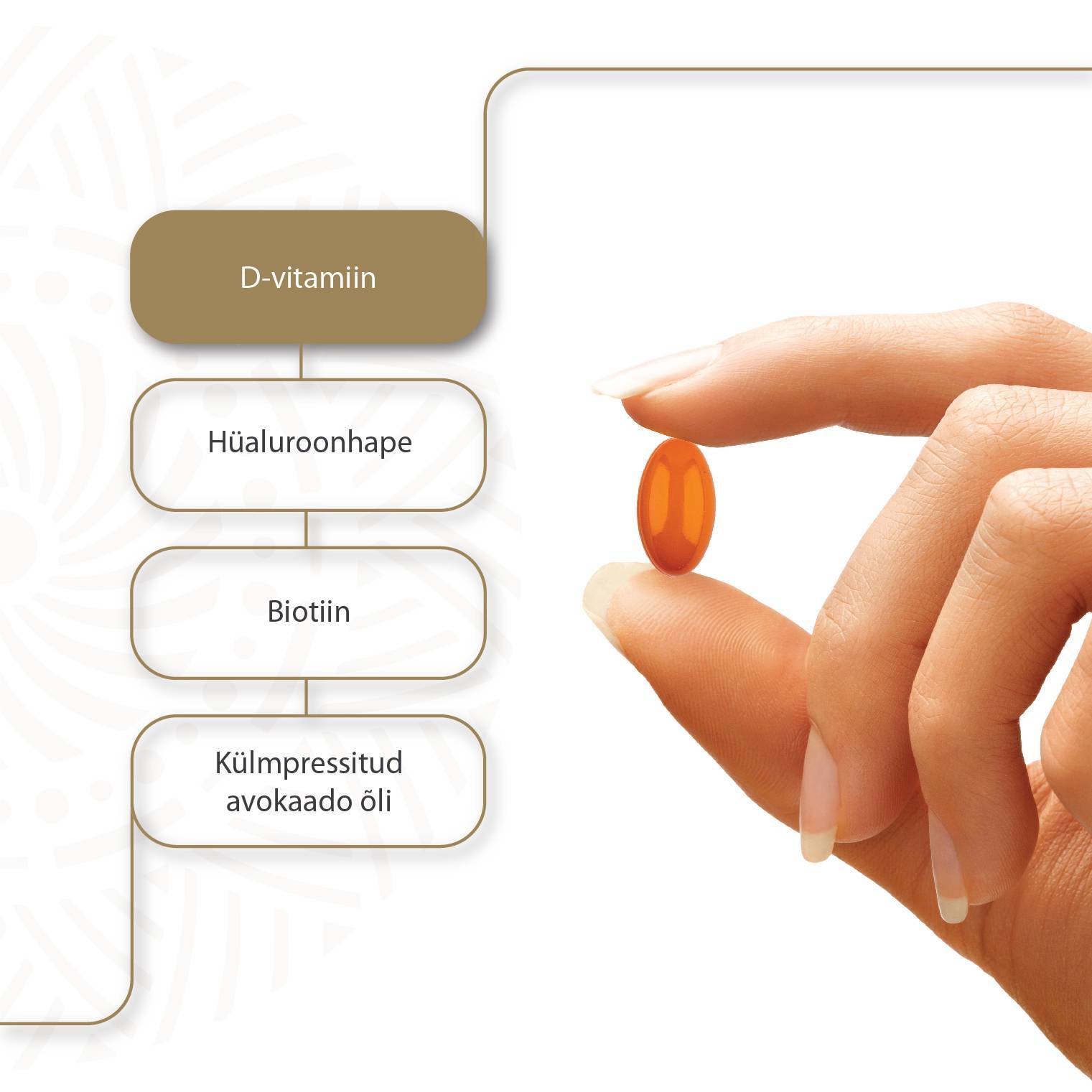 Efektiivse imendumisega D3-vitamiini õlikapslid nõudlikule naisele hüaluroonhappe ja biotiiniga.