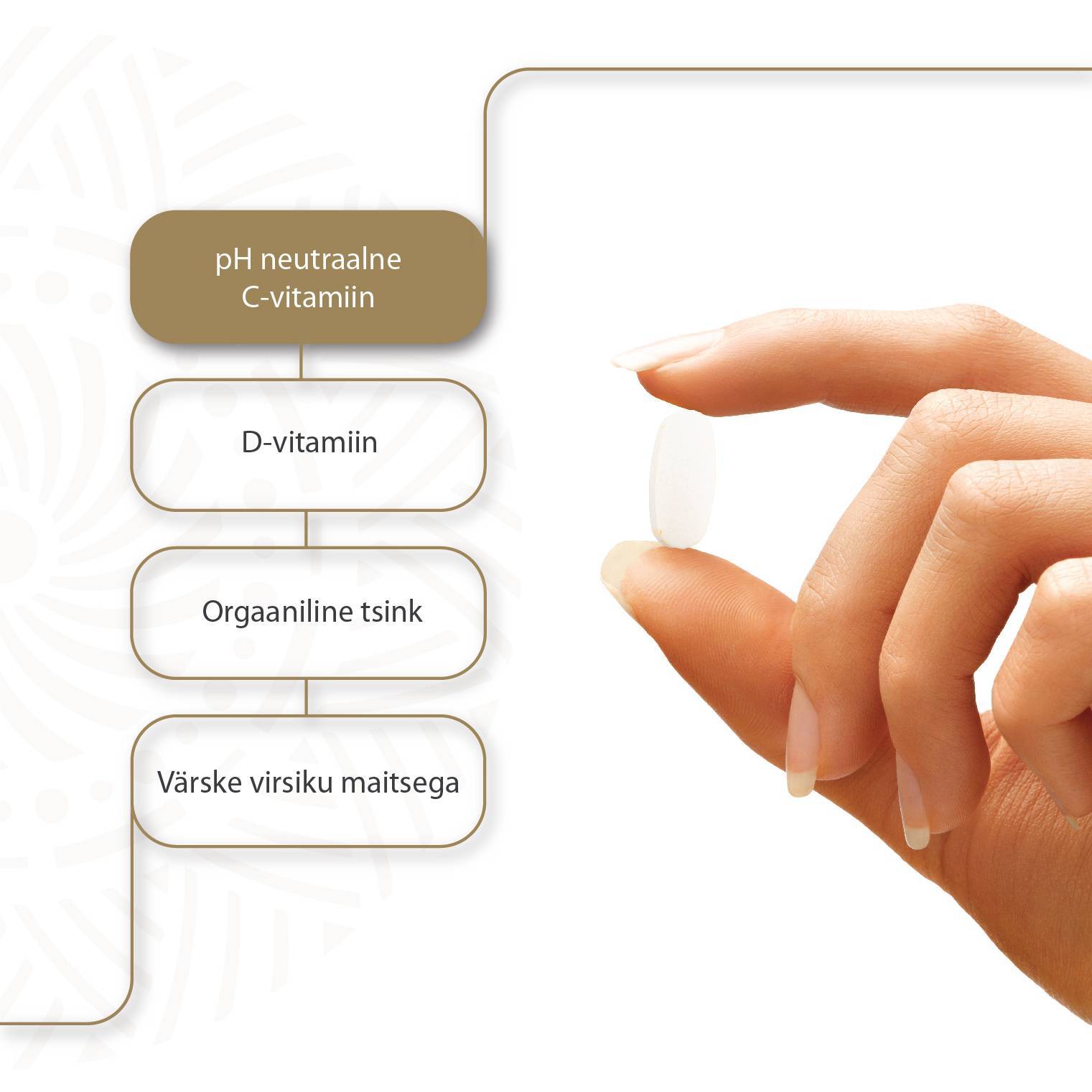 | pH neutraalne Vitamiin C | 300 mg (375%) |