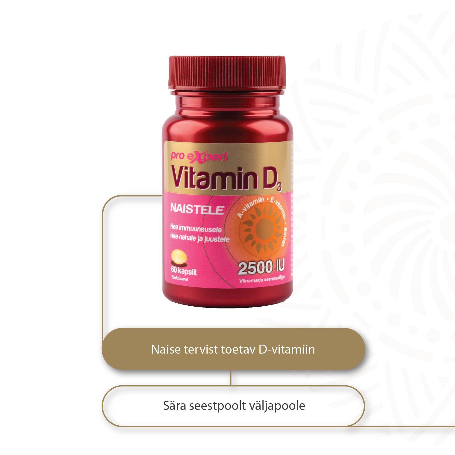 Efektiivse imendumisega D3-vitamiini õlikapslid naistele biotiini, A- ja E –vitamiiniga. D-vitamiin on hea luudele ja hammastele.